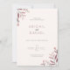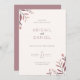 Invitación de boda boho chic con detalles decorativos de ramas y hojas en tonos rojos y rosas y tipografía sencilla. Edita fácilmente el contenido de este producto en el botón personalizar o añade tus propios detalles con la opción editar diseño