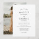 Una invitación de boda con tipografía minimalista moderna elegante con un tipo de letra script moderna y un tipo serif inspirado en inscripciones romanas del siglo I, y basado en proporciones clásicas. La parte trasera de la invitación cuenta con una elegante foto de boda. Personalice con su propia foto cargada. Estilo limpio y moderno. ¡Disponible para imprimir, como descarga digital o ambos!