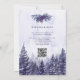 Esta elegante invitación de boda de bosque de pinos morados al agua puede ser personalizada con su información en tipografía moderna con el código QR de su sitio web de boda en el reverso. Diseñado por Thisisnotme©