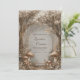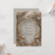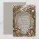 Sumérjase a sus invitados en un mundo de maravillas vintage con este paisaje encantado de bosque atmosférico de tono sepia. El diseño se caracteriza por una sofisticada paleta monocromática de bronce, beige y crema, creando un ambiente atemporal y orgánico. Grandes hongos con alta textura fundamentan la base de la escena, mientras que un dosel colgante de delicados racimos de flores blancas y luces de hadas brillantes añaden un toque de luz mágica. Un marco rectangular de bronce delgado y elegante centra la composición, proporcionando un punto focal pulido en medio de la profundidad boscosa brumosa y soñadora. Esta invitación de boda es perfecta para una celebración rústica en el bosque, un evento de cuento de hadas inspirado en el vintage o una ceremonia de otoño elegante. Estos motivos aseguran que los detalles de su evento se presenten dentro de un entorno natural único y detallado que establece un tono encantador y