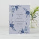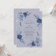 Este elegante diseño presenta una paleta monocroma de tonos azules pizarra y navales. Rosas pintadas a mano con acuarela y ramitas delicadas crean una estética botánica serena. El fondo etéreo complementa el follaje exuberante, lo que lo hace ideal para un evento sofisticado de invierno o primavera.