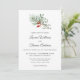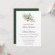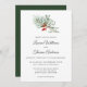 Una simple ramita de pino, muérdago y bayas rojas acentúan esta elegante invitación de boda minimalista perfecta para bodas durante la temporada de vacaciones de Navidad y los meses de invierno. La combinación de texto combina una tipografía de letra script moderna con los nombres de la novia y el novio junto con una elegante tipografía serif para el otro texto. La parte posterior de la invitación es un verde bosque a juego. Puede editar este color a cualquier otro color si lo desea. Personalice el texto con los detalles de su boda.