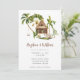 Diseño de boda botánica de palma tropical con una cabaña de playa con exuberante vegetación. Perfecto para celebraciones de destino, jardín o playa. El estilo de letra moderna añade un ambiente relajado y elegante para las parejas que planean una boda tropical.
