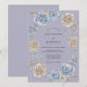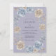 Las flores suavemente representadas en periwinkle, azul apagado y beige cremoso crean un borde etéreo y romántico. Los delicados acentos de vegetación añaden profundidad a esta composición botánica, evocando una atmósfera serena y elegante para una ocasión especial.
