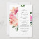 Envía hermosas invitaciones de boda florales rosadas y grises. Elija entre un nombre cursivo o impreso. Versión 2