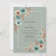 Este diseño presenta una delicada disposición de flores y follaje estilizados en tonos de verde salvia, rosa polvoriento y melocotón pálido. Un efecto sutil y pictórico le da un toque romántico y caprichoso, perfecto para una unión elegante.