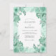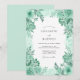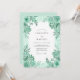 Este diseño presenta una disposición exuberante de rosas de color verde menta y follaje delicado. La paleta monocromática crea una estética limpia y fresca perfecta para un evento de primavera o verano. Hojas intrincadas de acuarela y flores suaves añaden un toque romántico y aireado al tema botánico.