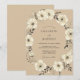 Este diseño presenta un fondo cálido y terroso que recuerda a la fibra natural, creando un ambiente acogedor e invitante. Delicadas anémonas de crema y follaje oscuro de carbón crean un arreglo floral orgánico alrededor del área central. Estos elementos de tonos neutros ofrecen una estética rústica y atemporal perfecta para un entorno al aire libre o en un granero.