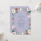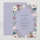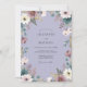 Este diseño presenta un sereno fondo de lavanda adornado con una delicada variedad de flores de acuarela. Anémonas cremosas y rosas polvorientas se encuentran entre hojas de eucalipto verde salvia y ramitas botánicas silvestres. El estilo pictórico crea un ambiente suave y caprichoso perfecto para un evento romántico de primavera o verano. La paleta de colores de púrpuras suaves y verdes terrosos evoca una estética etérea.