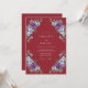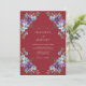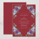 Este diseño presenta un rico fondo granate con flores de acuarela pintadas a mano. Delicadas flores púrpuras y suaves flores azules están dispuestas con gracia con hojas verdes terrosas. La paleta de colores profundos crea una atmósfera temperamental pero sofisticada para un evento romántico. Estos elementos botánicos proporcionan un ambiente exuberante y artístico.