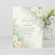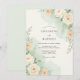 Una composición romántica que presenta flores de melocotón y crema suaves con delicado follaje verde. Los lavados de acuarela crean un ambiente etéreo y aireado. Este diseño evoca un encanto natural y suave perfecto para una celebración de primavera o verano.