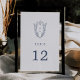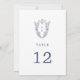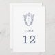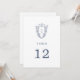 Estos números botánicos de mesa blancos y azules de la colección Daphne son perfectos para un boda tradicional. El diseño es sencillo y clásico, con un elegante monograma de escudo real intemporal con flores y vegetación que rodea las iniciales de la pareja. La tarjeta se imprime en la parte delantera y trasera (doble cara). Agregue cada número de tabla que necesite a su carrito individualmente.