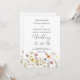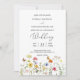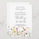 Flores y mariposas coloridas crean un diseño botánico rústico para las invitaciones de bodas al jardín. Flores amarillas, naranjas, rosas y azules bailan por el fondo. Los tipos de letra serif y cursive se suman a este bonito diseño clásico.