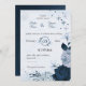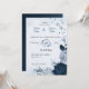 Invitación boda botánico de flores azul polvorientas y marina