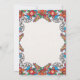 El diseño de la Invitación a la Boda de las Flores Coloridas de la Fiesta Mexicana presenta un audaz e intrincado arreglo floral con vibrantes flores rojas, azules, naranjas y verdes, creando un llamativo borde simétrico en la parte superior e inferior de la tarjeta. Los racimos florales están enmarcados por elegantes patrones de helecho negro, que añaden contraste y profundidad a las flores de colores. El diseño combina elementos tradicionales de arte folclórico con una vitalidad moderna, lo que lo convierte en el lugar perfecto para una celebración festiva como un boda.
