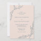 Invitaciones nupciales con temática de moda y naturaleza, perfectas para celebraciones de jardín. Con follaje dibujado a mano con hojas y flores en azul marino contra fondo rosa pastel. Una tipografía minimalista de suero y cursiva muestra los detalles y nombres de su boda. Revertir a simples puntos de polka en la parte posterior contrastando el frente.