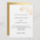 Una invitación a la boda moderna, elegante y minimalista. Delante: un elegante fondo blanco decorado con falsos florales de oro. Personalice y agregue sus nombres y detalles del boda. Letras de color negro. Atrás: un fondo falso dorado.