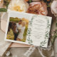 Elevar a su boda con el elegante diseño formal de la invitación horizontal de la foto Boda botánica, una fusión intemporal de un verde jardín floral acuático y refinada sofisticación. Este moderno diseño clásico presenta delicados elementos botánicos de exuberante eucalipto entrelazado y elegantes flores blancas, que evocan el romance de la naturaleza en cada temporada (primavera, verano, otoño o invierno). Con un equilibrio artístico de lujo formal y encanto boho, esta estética única pero tradicional combina caligrafía elegante con elegancia vintage, lo que lo hace perfecto para parejas que buscan un toque romántico y atemporal. Ya sea que visualice una paleta verde esmeralda inspirada en el bosque o un aspecto neutro y minimalista, este diseño versátil complementa cualquier tema boda, desde casual y simple hasta formal y pulida. Diseñada para crear una experiencia boda ininterrumpida y coherente con una gama de productos de coordinación, esta colección ofrece una moda sin esfuerzo y una forma asequible de llevar su visión a la vida. La elegante colección de Bodas botánicos es el escenario perfecto para su historia de amor única. Como con todos nuestros productos, si tiene alguna pregunta sobre los diseños o solicitudes especiales de artículos de coordinación, por favor háganoslo saber!