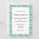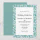 Elegante patrón de hojas turquesa Invitación a la boda botánica. Hojas turquesas en blanco. El patrón de hoja enmarca el texto. Puede personalizar fácilmente todo el texto - personalizarlo con el nombre de la novia, el nombre del novio, fecha y hora, ubicación, y cambiar o borrar cualquier texto de la tarjeta.