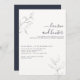 Invitación Boda botánico moderno con código QR Navy con guión