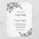 Moda y moderna invitación a la boda en blanco y negro con hojas botánicas negras ilustradas y escritura de caligrafía de bonito. Compra esta hermosa colección de bodas para la suite boda coordinadora.