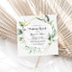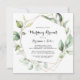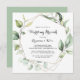 Esta elegante y geométrica invitación al brunch boda de color dorado es perfecta para un evento moderno. El diseño se basa en hojas de eucalipto botánico pintadas a mano, adornando un marco geométrico dorado.