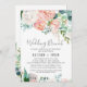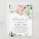 Esta romántica tarjeta de invitación al brunch boda con flores de peonía es perfecta para un evento elegante. El diseño floral incluye flores de color rosa, melocotón y acuarela en cascada.