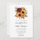 Invite a sus huéspedes a su boda de otoño inspirada en girasoles y rosas rojas, con nuestras invitaciones nupciales con un ramo de girasoles, rosas rojas y vegetación.