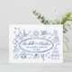 Invitación Boda Caprichosa Azul con Letra a Mano Dibujada a M