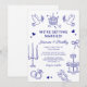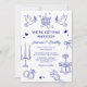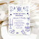 Agregue un toque único a su día de boda con nuestras invitaciones de boda caprichosas y hechas a mano. Cada diseño es una obra de arte que presenta divertidas ilustraciones de garabatos azules sobre un fondo blanco crujiente. Fáciles de personalizar con los detalles de su evento, estas invitaciones seguramente delitarán a sus invitados y establecerán el estado de ánimo para su día especial.