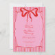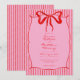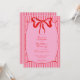 Esta invitación caprichosa presenta un lazo de acuarela rojo jugoso y un marco de cartela escalonado juguetón contra un divertido fondo a rayas rojas y rosadas. Perfecto para una boda con estética preppy, casual o de San Valentín, este diseño encantador proporciona un aspecto dulce y pintado a mano para su celebración especial. Creado por Simply Farmhouse Press.