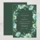 Delicados florecimientos en acuarela en tonos de menta y verde esmeralda adornan este diseño encantador. El follaje exuberante gira en torno a los bordes, creando una atmósfera caprichosa y romántica perfecta para una celebración de inspiración natural.