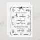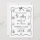 Invitación De La Boda De Mano A La Boda. Esta alegre y artística invitación a la boda es ideal para las parejas que quieran llevar una imagen creativa y desenfadada a su celebración. Con una decoración clásica en blanco y negro, se siente como una creación encantadora, dibujada a mano con un toque personal. Un marco ondulado atado con una delicada reverencia en la parte superior resalta los detalles de tu boda, estilizado en una mezcla de guiones y letra manuscrita para un aspecto casual y elegante. Alrededor del texto hay escenas divertidas y extravagantes de íconos bodas, como anillos, un pastel en niveles, corazones, una torre de champán, flores y un auto "Just Married". Estos doodles extravagantes en línea de arte le confieren al diseño una estética moderna y despreocupada al tiempo que mantienen un encanto sofisticado. La parte posterior de la tarjeta contiene un detalle dulce, un monograma a mano de tus iniciales enmarcado por corazones pequeños. Personalizable completo, esta invitación es perfecta para parejas modernas que buscan algo único, elegante y lleno de personalidad. Disponible como una invitación impresa o como un archivo digital descargable para compartir en línea o imprimir localmente.