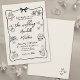 Invitación a la Boda Whimsical De Inspiración Vintage. Este diseño artístico y lúdico es ideal para las parejas que desean infundir su día especial con un encanto creativo y alegre. El diseño, con un fondo vintage de color blanco roto o envejecido, tiene la sensación de ser una obra maestra personal, hecha a mano, única y atemporal. Un marco ondulado y ondulado acentuado con un arco delgado resalta los detalles de tu boda, que se muestran con gusto en una mezcla de guiones y tipos de letra manuscritos para un toque relajado y elegante. Encantadores bocetos de elementos clásicos bodas, como anillos, torta en niveles, corazones, una botella de champán con un vaso, flores y un auto "Just Married", añaden una atmósfera caprichosa y despreocupada. Estos deliciosos garabatos aportan un toque moderno y nostálgico, combinando sofisticación con un toque artístico y divertido. En la parte trasera se encuentra un toque muy cuidado: un monograma a mano de sus iniciales enmarcado por delicados corazones, completando la estética de inspiración vintage. Personalizable total, esta invitación le permite ajustar texto, colores y detalles para que coincidan con su visión. Ya sea impreso o compartido como archivo digital, es la elección perfecta para parejas que buscan una manera elegante y memorable de anunciar su celebración.