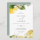 Esta moderna invitación a una boda casual al al jardín de limón es perfecta para un boda de primavera o verano. El diseño rústico mediterráneo presenta limones acuáticos brillantes y hermosos con flores blancas bohemias y elegantes hojas verdes.