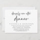 Tarjeta de invitación de boda con tema de escritura moderna (cena felices para siempre). Es perfecta para su cena de boda casual junto al lago, baile y fiesta.
