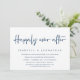 Tarjeta de invitación de boda con tema azul marino y letra moderna, (fiesta felices para siempre). Es perfecta para su cena de boda casual al lado del lago, baile y fiesta.