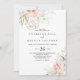 Este follaje dorado con una invitación a una boda casual floral es perfecto para un boda moderno. El diseño presenta un follaje botánico de color dorado y verde con flores rosas, ruidosas y blancas, que inspiran la belleza natural.