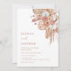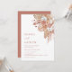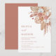 Esta elegante invitación de boda contemporánea presenta flores de orquídeas pintadas con acuarela y hierba de pampas de terracota sobre un fondo blanco.