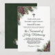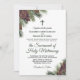 Esta hermosa invitación a la boda es perfecta para una ceremonia católica moderna. Presenta un diseño rústico y elegante con pinares acuáticos pintados a mano y ramas de pino en tonos marrón castaño y verde bosque. Incluye una cruz o crucifijo, y un texto que invita a sus invitados a asistir a una misa nupcial uniendo a la pareja en el sacramento del santo matrimonio. Esta invitación es la combinación perfecta de tradición formal y estilo moderno, lo que hace que sea una manera maravillosa de invitar a tus amigos y familiares a compartir tu alegría en tu día especial. Ideal para una ceremonia al aire libre, de montaña, de bosques o de invierno.