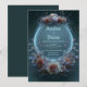 Invite a sus invitados a una velada de romance sobrenatural con esta impresionante escena botánica atmosférica. La composición está anclada por un anillo de neón brillante que ilumina una corona simétrica y exuberante de elementos de jardín. En la base, una flor de rosa champán aterciopelada se sienta rodeada de ramitas de cardo de cobre puntiagudo y tallos delicados de flores silvestres espolvoreados de estrellas. El fondo azul verdoso profundo y sombrío está lleno de un bokeh de polvo de estrellas brillantes y rastros de luz etérea, creando un sentido de misterio mágico. Esta invitación de boda es la opción principal para una ceremonia celestial, una celebración de fantasía de alta gama o una gala moderna de noche. Estos motivos aseguran que los detalles de su evento se presenten dentro de una atmósfera encantadora y sofisticada que establece un tono verdaderamente