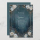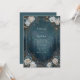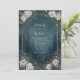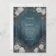 Invite a sus huéspedes a disfrutar de un romanticismo celestial bajo un toldo de estrellas con esta mágica y encantadora invitación al bosque. El diseño presenta un impresionante y pintoresco ilustracion de un bosque de pinos profundo bajo el crepúsculo, con un hermoso cielo estrellado que asoma a través de los árboles nublados. Una frondosa y romántica frontera de antiguas peonías blancas florecientes y un follaje azul polvoriento, acentuado con toques de bronce y una rociada de polvo de oro mágico, encuadra con elegancia la escena. Los profundos tonos verde azulados y azules de medianoche del bosque crean un ambiente misterioso y profundamente romántico, proporcionando un entorno impresionante para los detalles de tu evento dentro de un sofisticado y delgado marco dorado. Si bien es perfecto para un boda con temática nocturna encantada, celeste o estrellada, este mágico diseño también es muy adecuado para una gala formal, una bola de invierno o una celebración de aniversario bajo las estrellas. Fijar el tono para una noche inolvidable de elegancia y encanto.