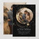 Esta invitación a la foto boda teje una narrativa mágica para tu celebración con temática cósmica, con el tema "Debajo de las estrellas", "Escrito en las estrellas" o "Hacia la luna y atrás". Un diseño cautivador presenta un cielo nocturno lleno de estrellas con una fotografía compartida muy bien enmarcada en un motivo celeste de luna y sol. Este marco artístico invita a los huéspedes a maravillarse con los misterios del cosmos mientras se concentran en la gravedad de su amor, haciendo de su conexión el punto central de este viaje cósmico. El sorprendente contraste del negro y el oro no sólo aporta profundidad visual, sino que también transmite una elegancia bohemia moderna, que garantiza que los clientes se interesen por el diseño desde el momento en que lo miran. Mucho más que una simple invitación, este artículo sirve como una puerta personal a la maravilla y el romance de tu próxima unión, invitando a todos los que la reciben a entrar en una historia que abarca el universo mismo.