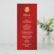 Esta moderna carta boda china cuenta con un símbolo artístico de oro doble felicidad sobre un brillante fondo rojo. Con nombres de novias y novios personalizados, la fecha del boda y un texto de menú personalizado en un guión moderno escrito a mano.