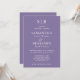 Invitación de boda de monograma de iniciales de lila clásica perfecta para una boda con un entorno formal.