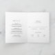 Elegante todo en una sola invitación de boda plegada con un diseño sencillo y clásico con los detalles de tu evento en fuentes serif tradicionales y elegantes de escritura. La tarjeta RSVP adjunta incluye opciones de comida para los huéspedes bodas.