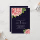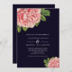 Una clásica y atemporal invitación a la boda en azul marino y rosa. En las esquinas de esta invitación, en un sofisticado fondo azul marino, que es el mismo que el fondo, hay dos peonías acuáticas detalladas. El texto de la invitación está en blanco opuesto. ...