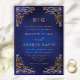 Invitación a la Boda Azul Ornate Ornate Monograma Clásico