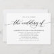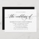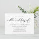 La sencilla y clásica elegante invitación a la boda incluye un guión de tipografía escrito a mano ''el boda de'' y detalles con letras mayúsculas en negrita sobre un fondo blanco.