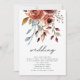 Invitación de boda de escritura de Florales de terracota rústica. Agregue su código QR a su sitio web de boda en la parte posterior hace que esta sea una opción conveniente para que sus invitados respondan y vean todos los detalles sin la necesidad de tarjetas de respuesta y detalles separadas. Un estilo informal elegante para el encabezado debajo de la belleza de las flores de acuarela. Personalice fácilmente con su información.